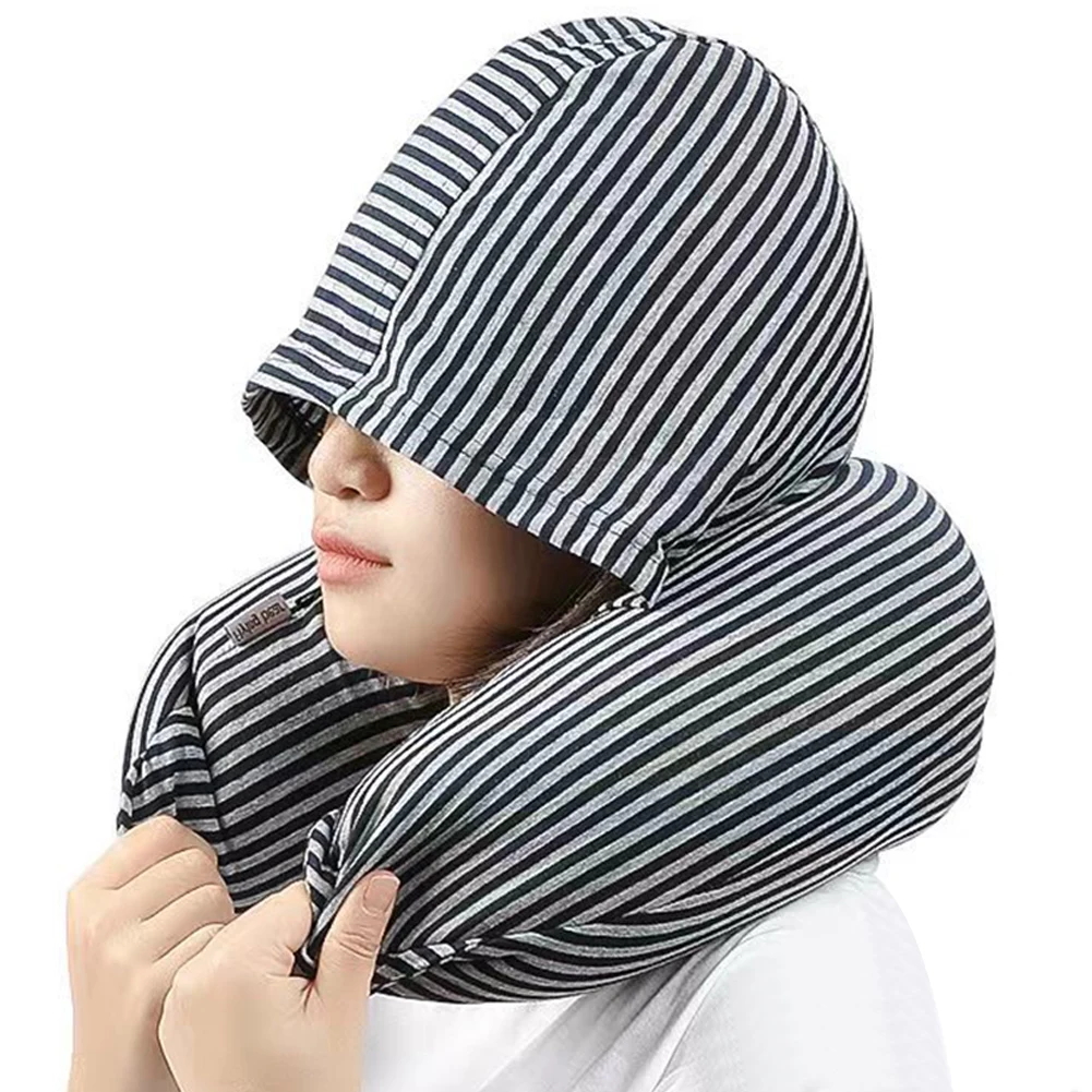 U-Shape Airplane Pillow with Hoodie Soft Comfortable Hooded Neck Travel Pillow
