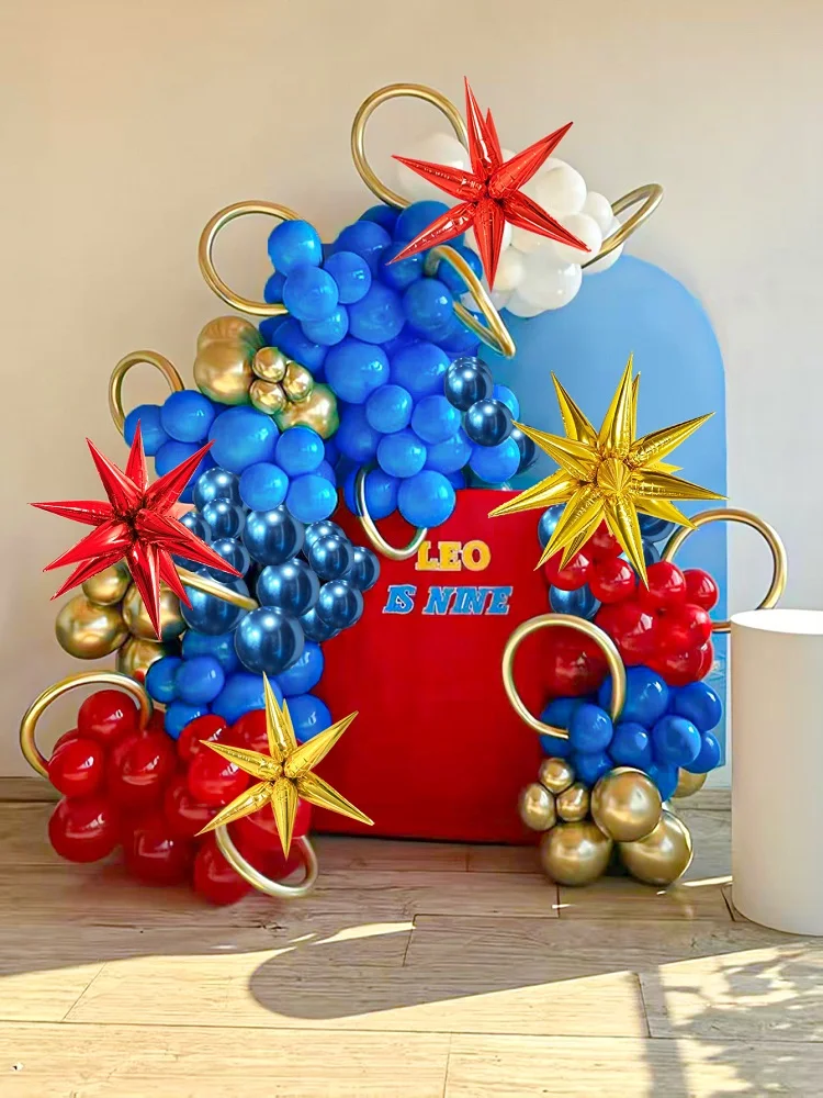 126pcs Kozee Red Blue Gold Balloon Wreath Arch Kit for Game Cartoon Theme Birthday Superhero Gamer Party Decorations  Read more