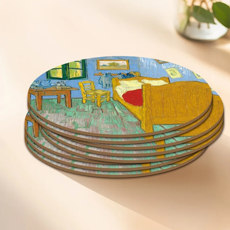 Van Gogh Art Wooden Coaster Set of 8 - Featuring Classic Paintings for Coffee and Drinks, Hand Wash Only Beautiful and Artistic