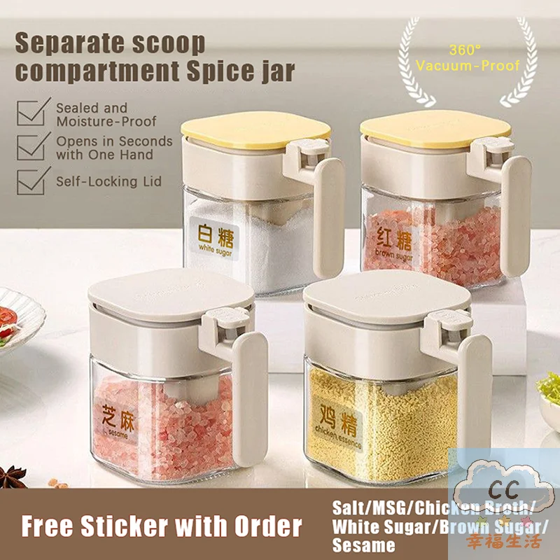 HUA HUA Sealed Glass Seasoning Jar Moisture-Proof Leak-proof Sugar And Salt Container With Dustproof Spice Jars Bottle Kitchen