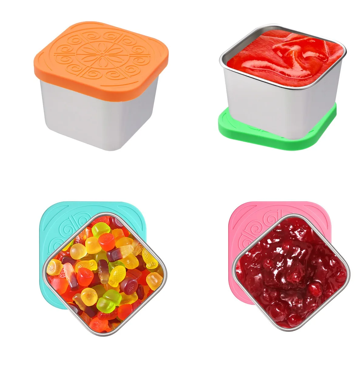304 Stainless Steel Sauce Cup 60/180ml Salad Tomato Sauce Container With Silicone Lid Leak Proof Dipping Dish