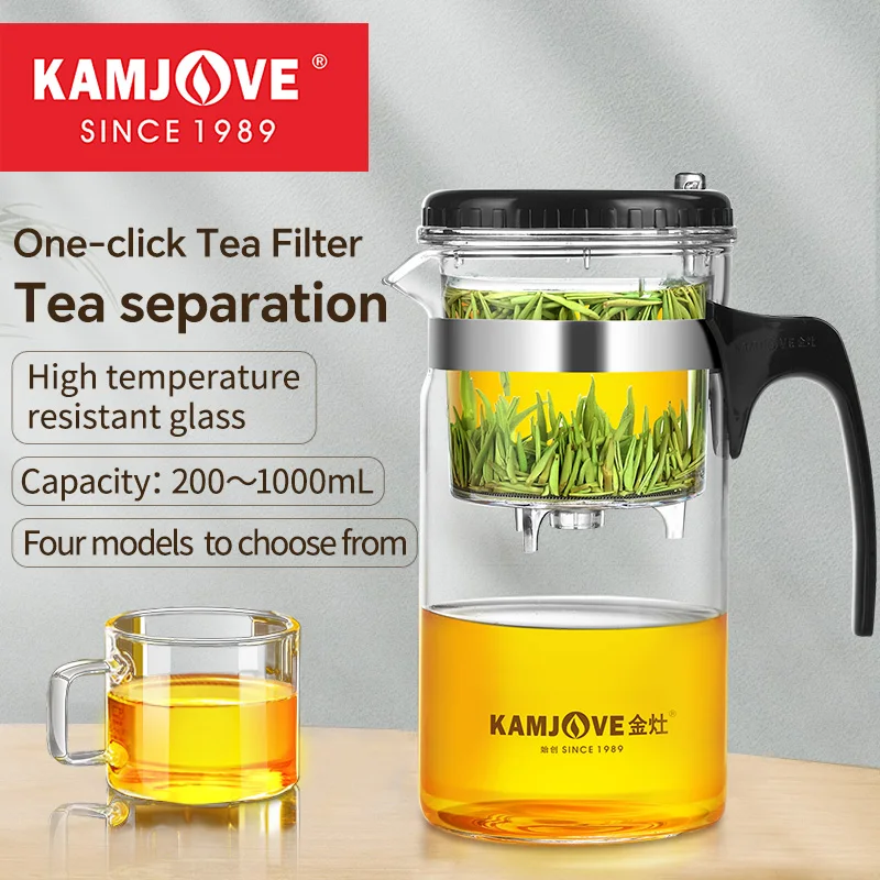 KAMJOVE One-button Filter Teapot Heat-resistant Glass Tea Set Filter Tea Pot Tea Chinese Kung Fu Tea able Ceremony Accessories
