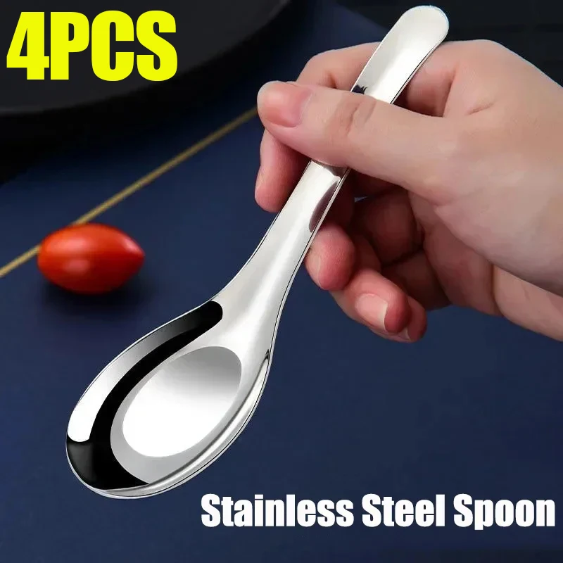 Stainless Steel Chinese Soup Spoons Home Kitchen Deepen Large Capacity Silver Mirror Polished Flatware for Soup Rice Tableware