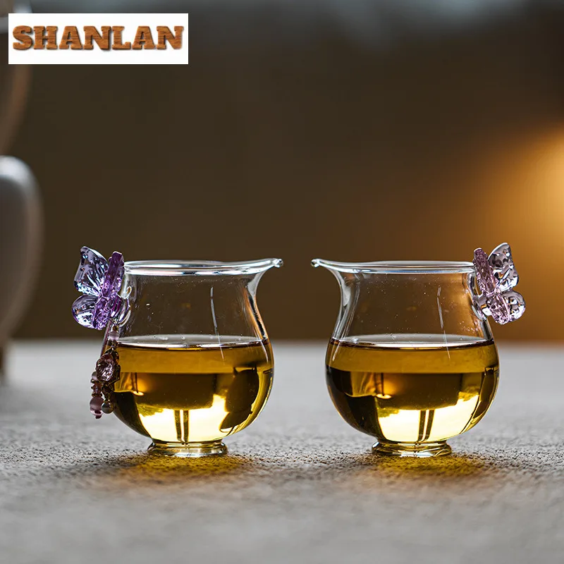 130ml Butterfly Glass Tea Pitcher Divide Tea Fair Cup Cha Hai Dispenser Justice Cup Green Tea Fair Mug Chinese Tea Set Supplies