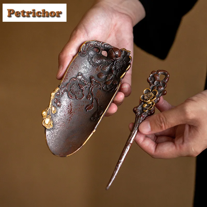 Hand Carved Plum Blossom Tea Scoop Elegant Shovel Chahe Household Appreciation Ladle White Tea Teaware Equipment Collection Gift