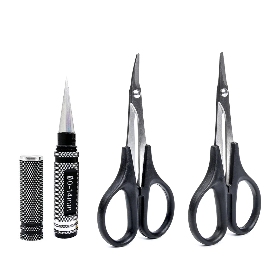 0-14mm Hole Puncher Reamer Curved & Straight Scissors Trimming Tools Set for RC Car Body Shell Plastic Body Cover Mounting Tools