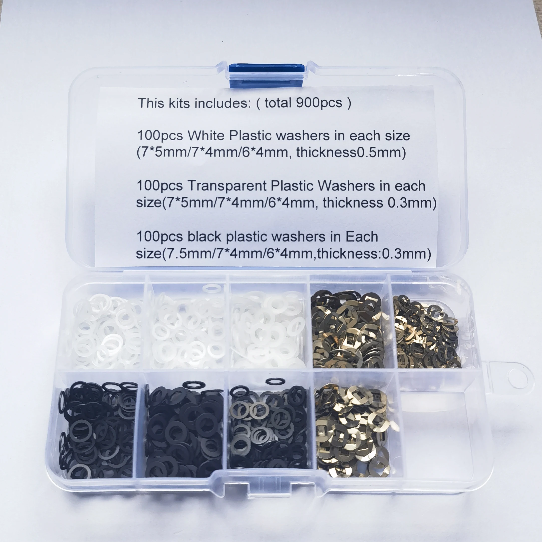 900pcs/Lot in Box Scissor Repair Kit Hairdressing Scissor Accessory Plastic 7*5/7*4/6*4mm Washers Barber Salon Scissor Parts