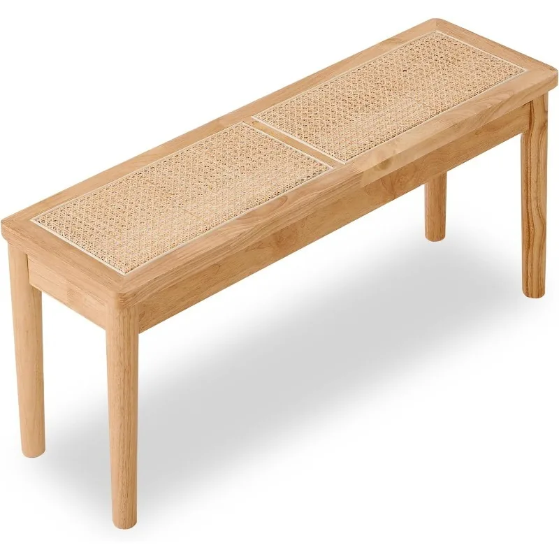 40" Wooden Dining Bench with Hand Woven Rattan Seat, Solid Wood Bench for Entryway, Living Room, Kitchen and Bedroom(Wood,18