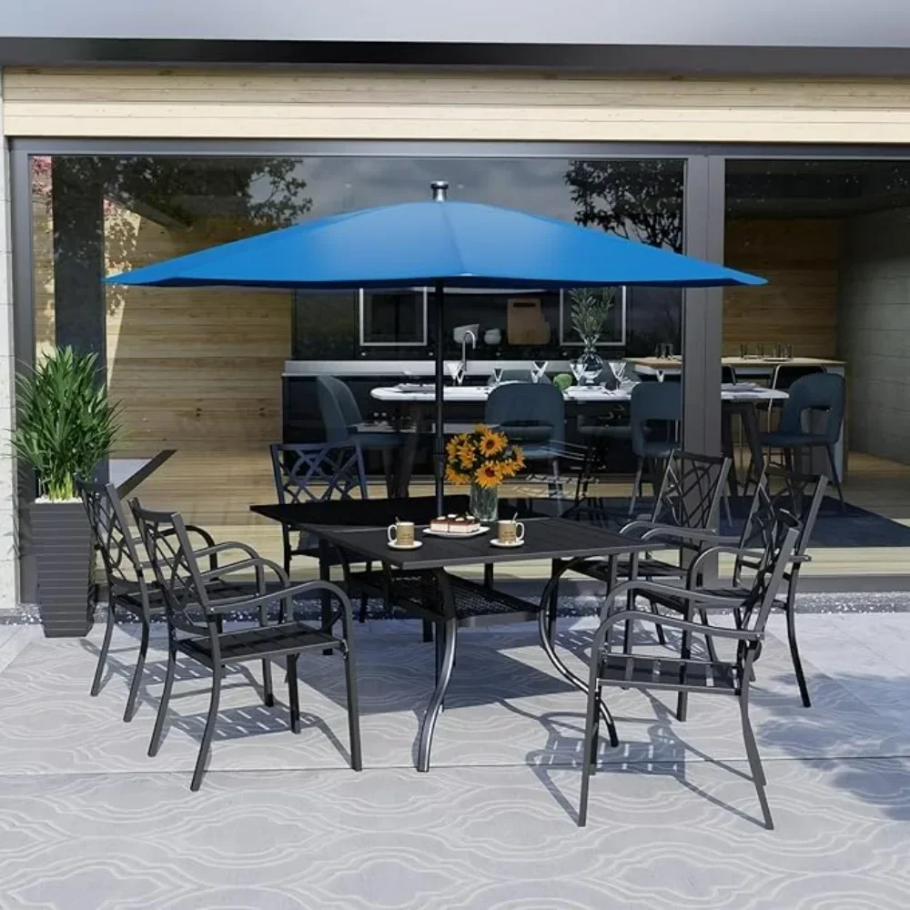 7-Piece Outdoor Wrought Iron Chairs and Table Patio Dining Furniture Set for Garden Backyard Deck