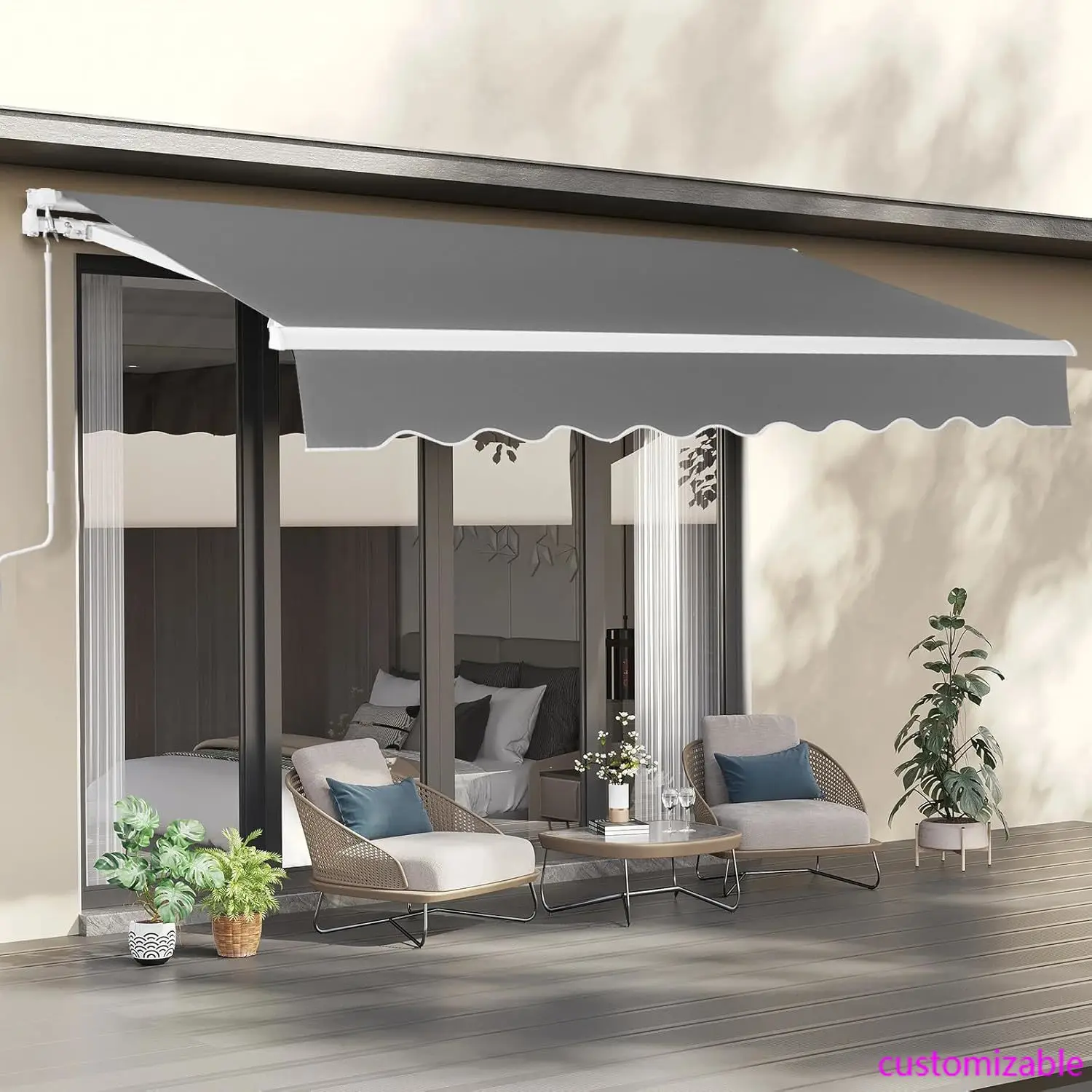 12' x 10' Retractable Awning for Patio Awning Door Awning with Manual Crank Handle, Aluminum Frame Door Canopy UV Resistant(Grey)