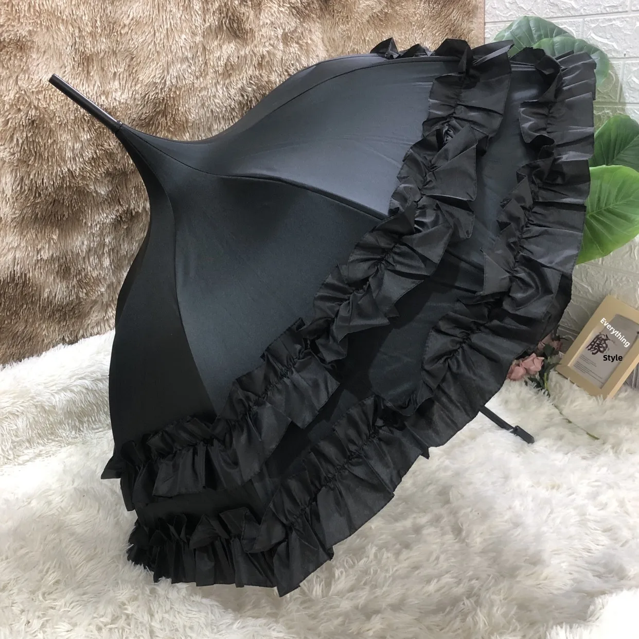 Princ Sle Long Handle Umbrella UV Protection Lace Trim Sun And Rainproof Polyester Fabric Auatic Stainl Steel t