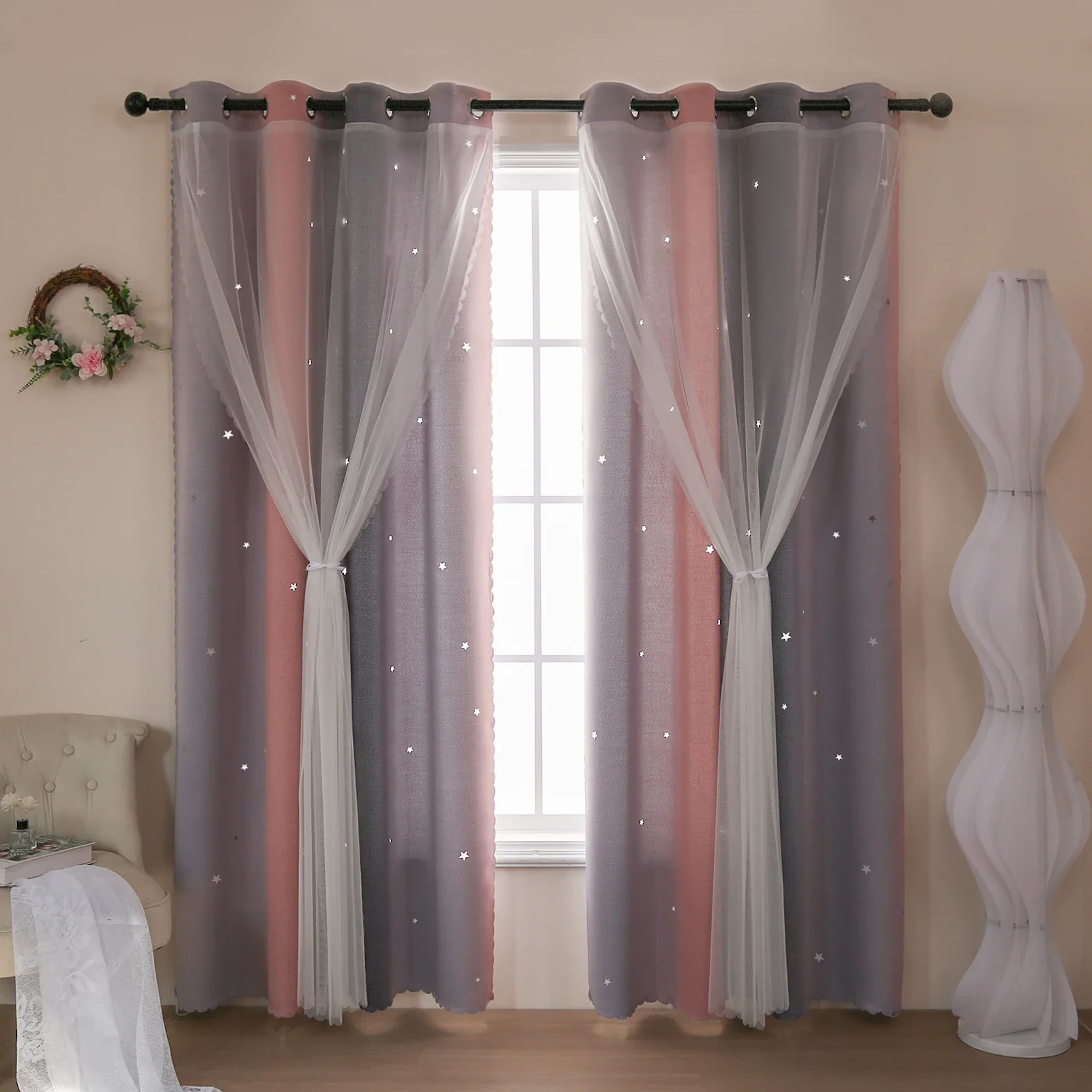 Gradient Double-Layer Perforated Curtains, Hollowed Out Stars, Children'S Room Shading Decoration, One Piece Set