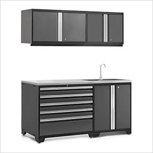 NewAge Garage Cabinets PRO Series Platinum 5-Piece Set with Stainless Steel Top