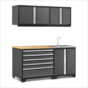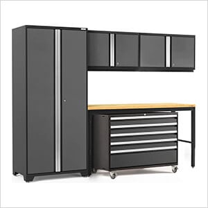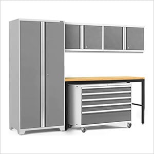 NewAge Garage Cabinets PRO Series Grey 5-Piece Set with Bamboo Top