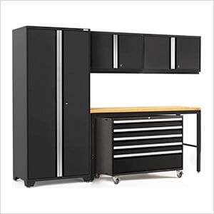 NewAge Garage Cabinets PRO Series Black 5-Piece Set with Bamboo Top