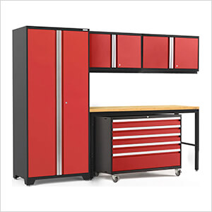 NewAge Garage Cabinets PRO Series Red 5-Piece Set with Bamboo Top