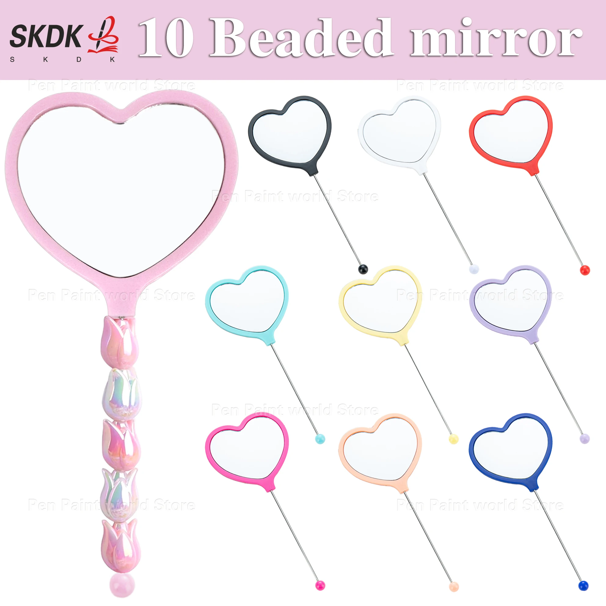 10Pcs New DIY Beaded Hand Mirror Creative - Portable Beaded Handheld Vanity Mirror with Heart Design for Books & Bookmark