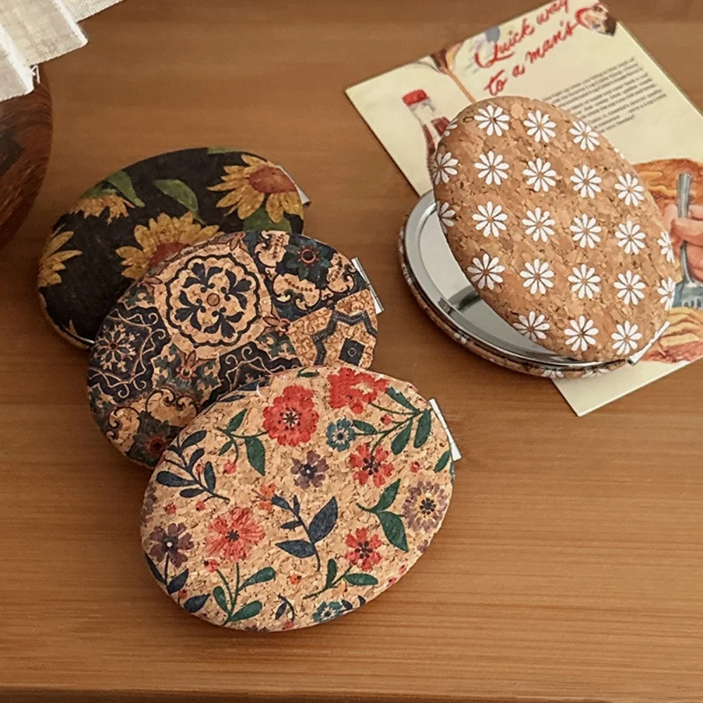 Cork Makeup Mirror Compact Folding Vanity Mirror Double Sided Makeup Mirror Cork For Girls Desk Travel Bag