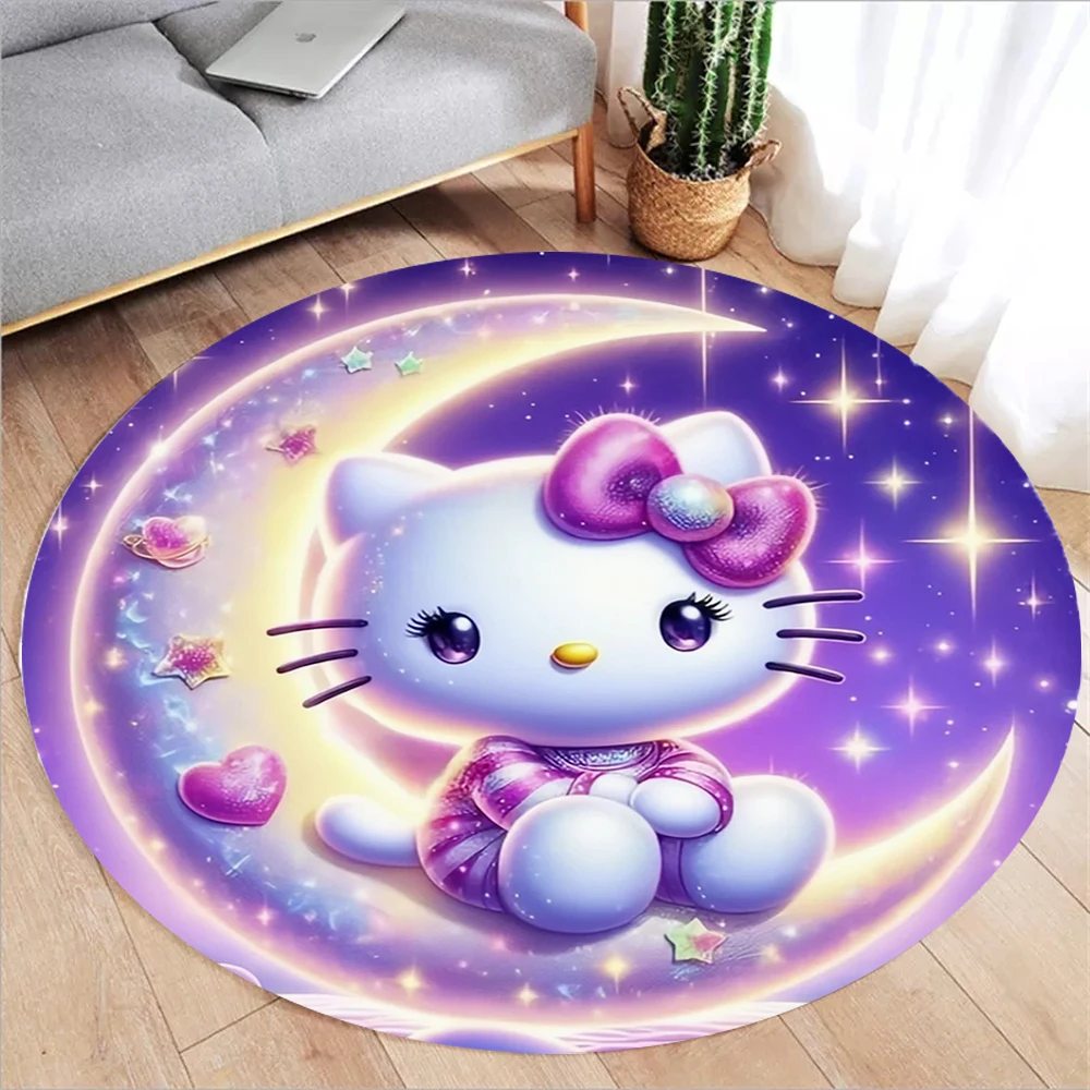 MINISO Sanrio Hello Kitty Print Rugs Anti-slip Round Rugs Carpet for Living Room Bedroom Sofa Rug Kids Floor Mat Gift Decor Mat