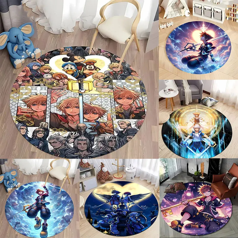 MINISO Kingdom Hearts Round Carpet Non-Slip Play Mat Floor Rug for Living Room Bedroom Kid's Room Round Mat Durable Washable Mat