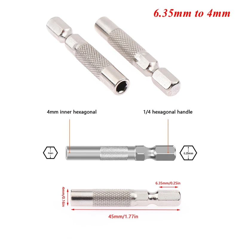2pcs Hex Shank 6.35mm To 4mm Insert Bit Adapter Electric Screwdriver Socket Holder Micro Bit Adapter Magnetic Holder Tool