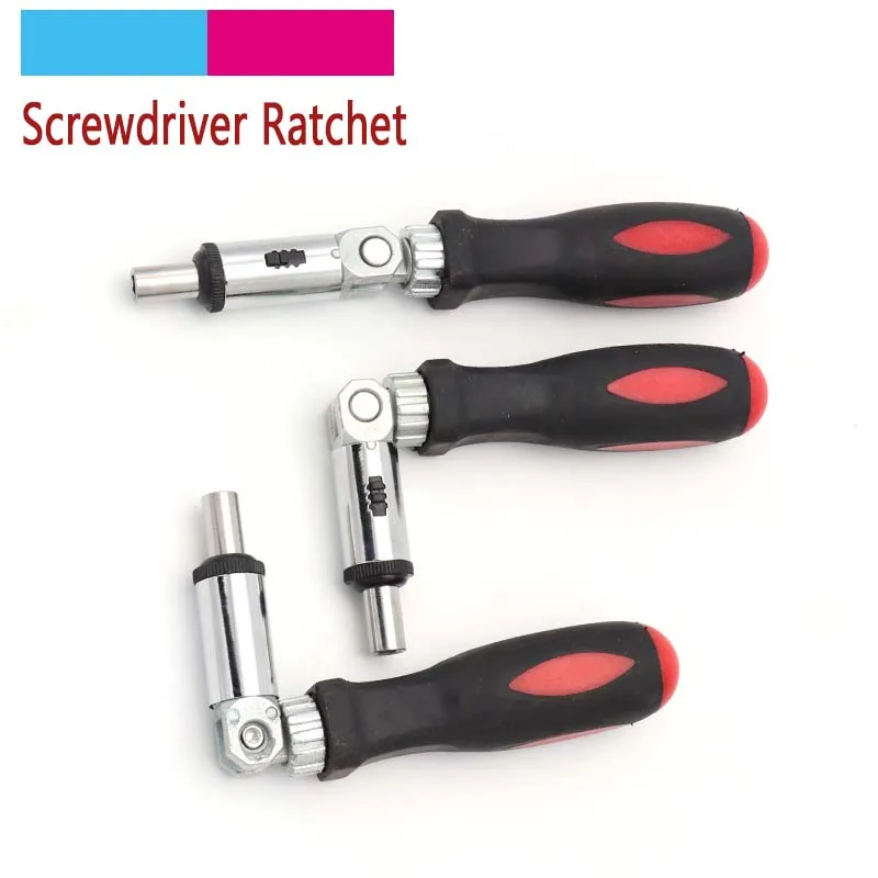 1pcs Screwdriver Multi-functional Ratchet Portable Wrench Red Handle Hexagonal Screw Driver 180 Degree Switch