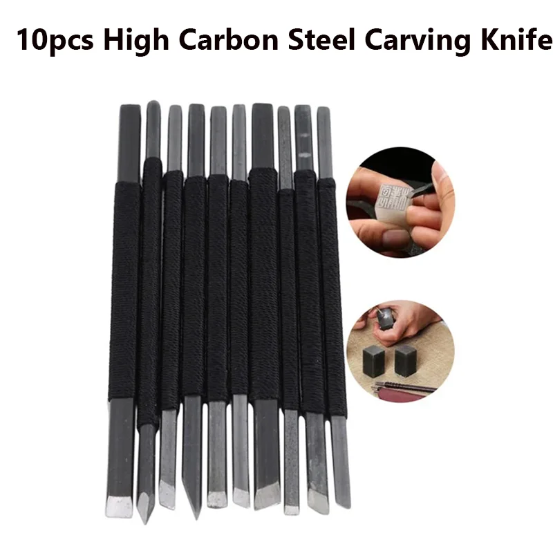 10Pcs High-carbon Steel Stone Carving Knife Engraving Knife Sculpture Stone Chisel Wood Carving Tools Set Woodworking Tools
