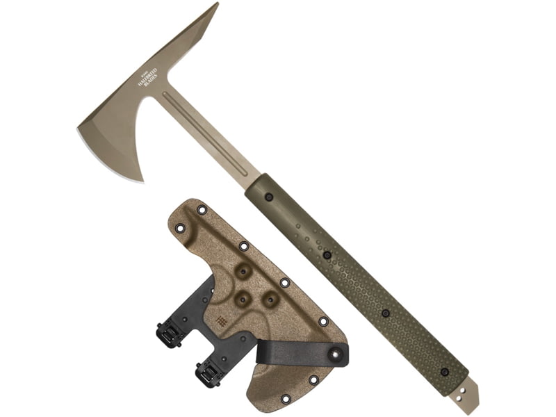 Halfbreed Blades Large Breaching OD Axe 18.38in Overall 7.5in OD Green Teflon K110 Tool Steel Axe Head w/ 3.25in Cutting Edge OD Green G10 Handle OD. 25in cutting edge. OD green G10 handle. Full extended tang. Lanyard hole. Chisel pommel for glass...  Read more