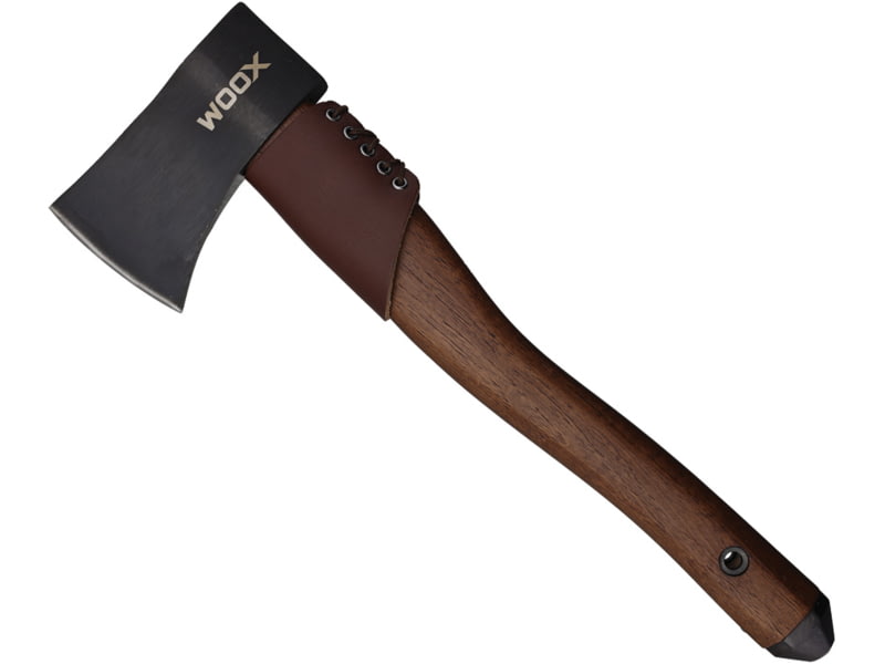 WOOX AX1 Bushcraft Axe 15.75in Overall 5.25in Blued Finish C45 Steel Axe Head w/ 3.25in Cutting Edge Hickory Handle Black Leather Belt Sheath. 25in cutting edge. Hickory handle. Leather collar. Steel pommel. Black leather belt sheath. Specifications...  Read more