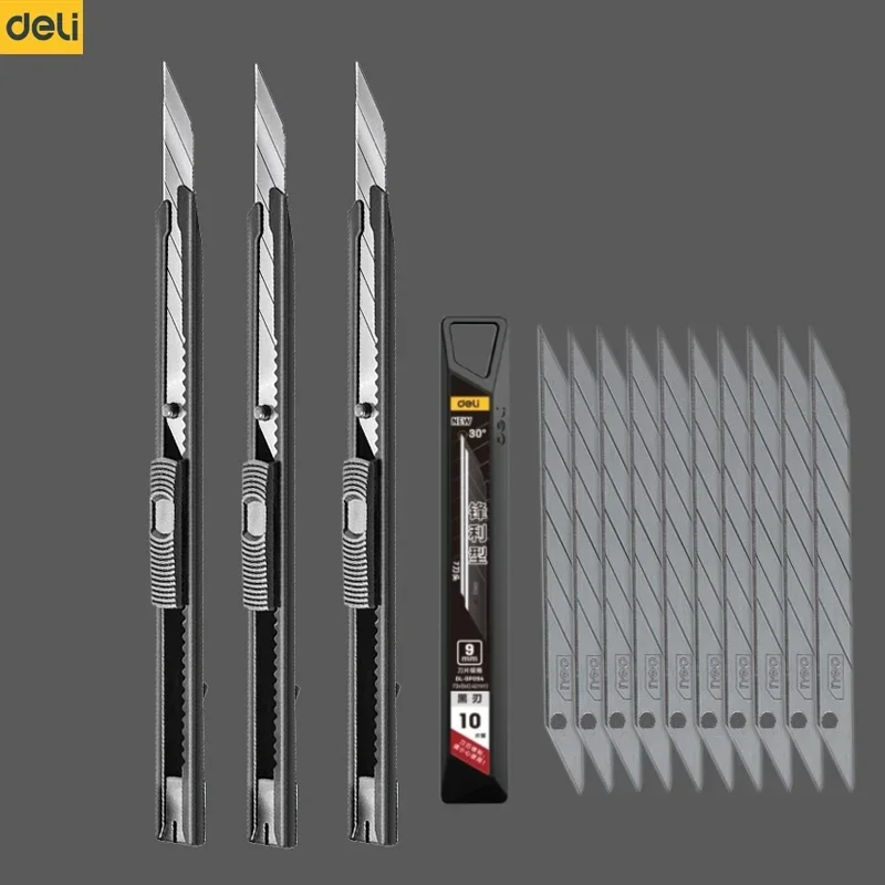 Deli Utility Knife High Carbon Steel Self-Locking Non-Slip Blades Unboxing Knife Paper Cut Multifunction Handicraft Carving Kits