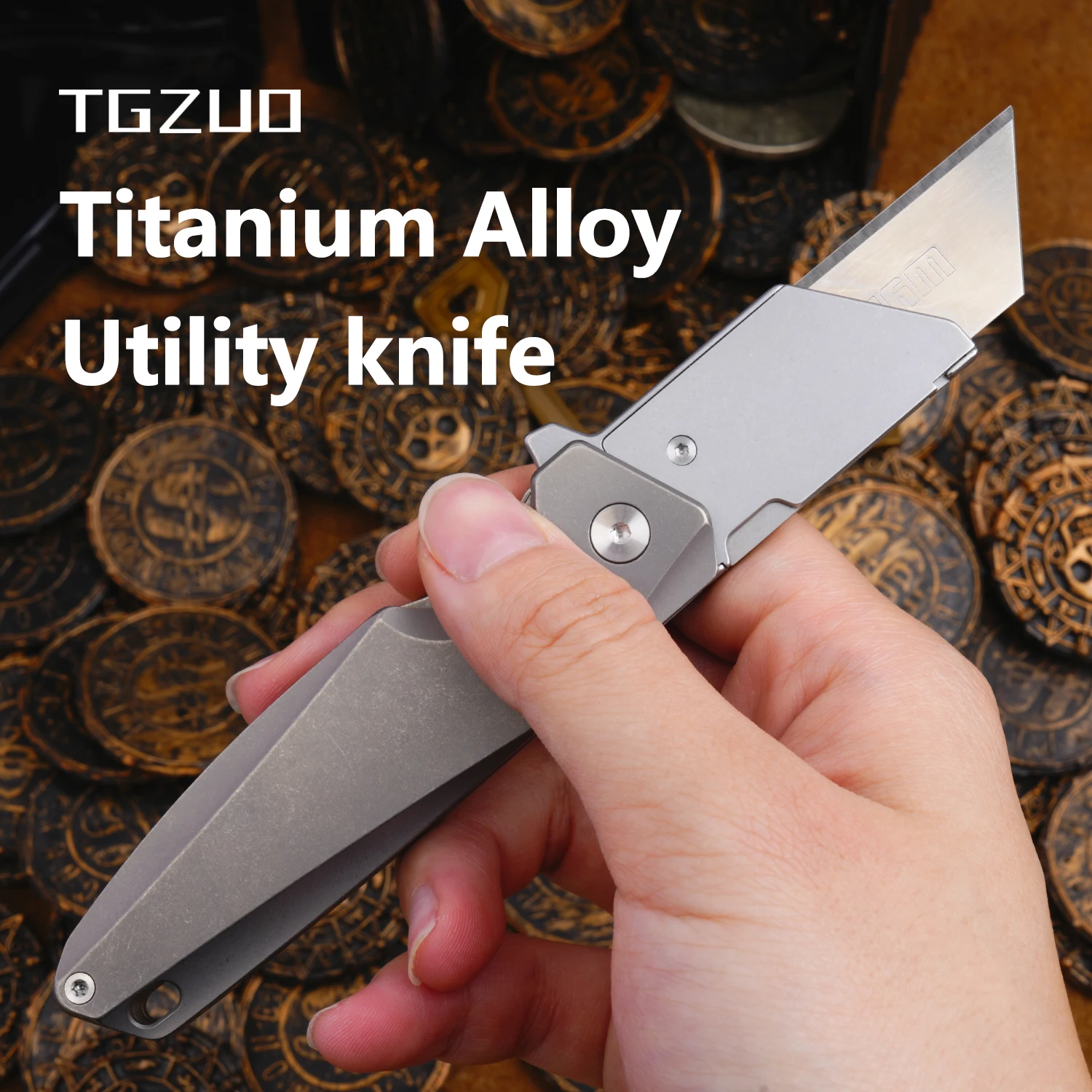 Titanium Alloy Folding Utility Knife with Clip and 10pcs SK5 Steel Replacement Blades Outdoor Cutter Tool Gray Pocket edc   Read more