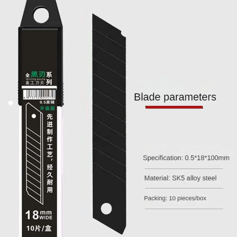 10pcs 18mm Utility Knife Blade SK5 Alloy Steel Cutter Black Edge Sharp Wallpaper Cutting Large Blade Multifunctional Spare Blade