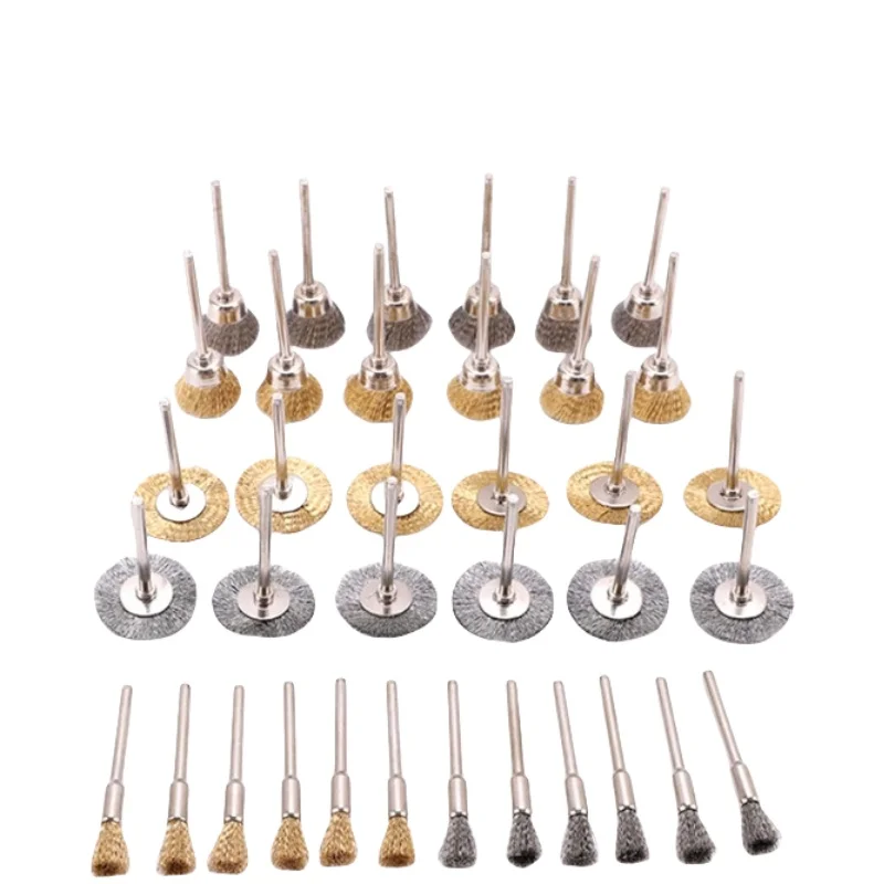 9pcs Brass Steel Wire Wheel Brush Polishing Grinder Accessories Rotary Electric Tool Kit For Engraver Steel Polishing Grinding