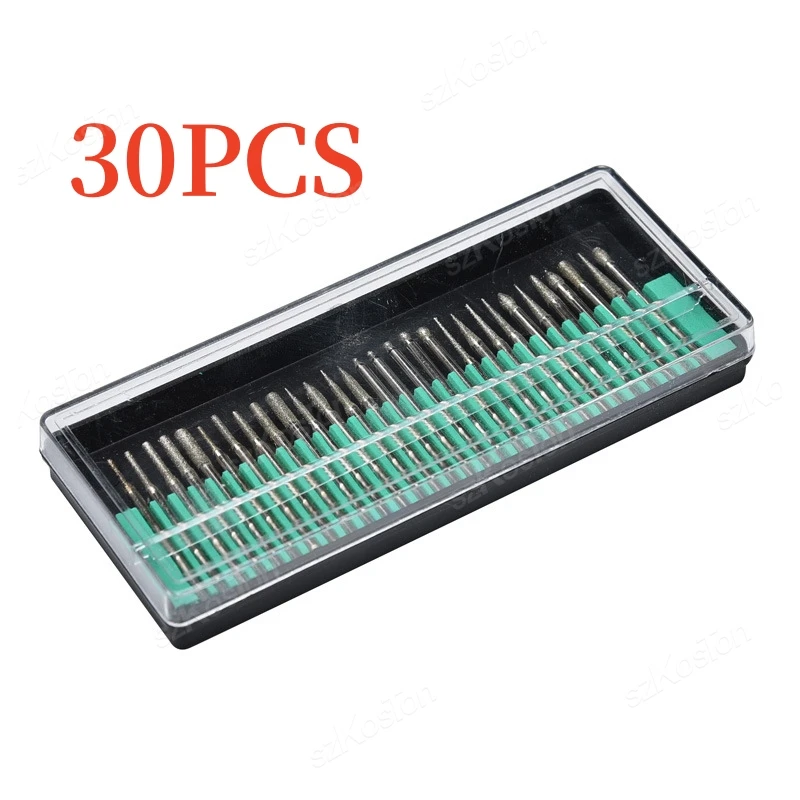 30pcs Shank Diamond Burs Set With Box For Dremel Electric Grinder Power Accessories Abrasive Drill Bit Rotary Tool Set 2.35/3mm