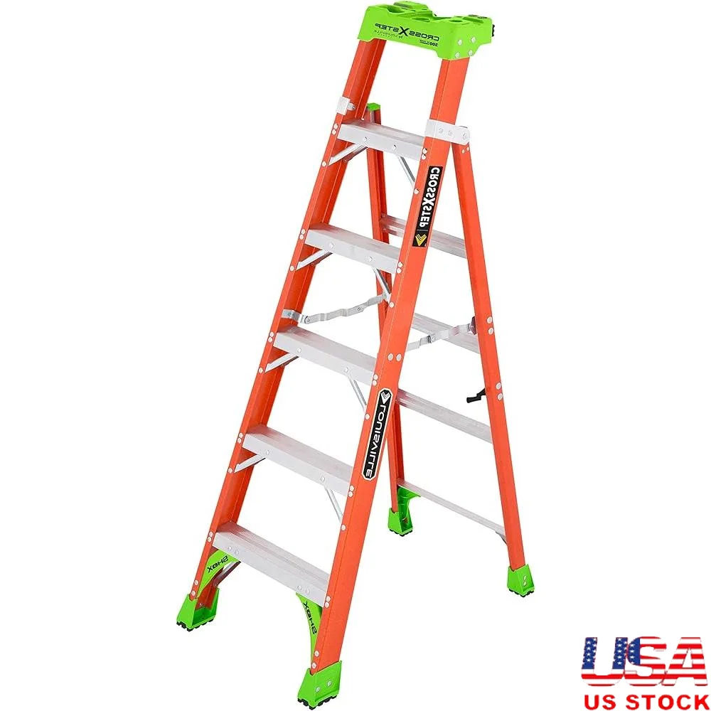 6ft Fiberglass Step Ladder with Pro Top Non-Conductive Heavy Duty Anti-Slip Durable ShoX System Tool Organizer Stability