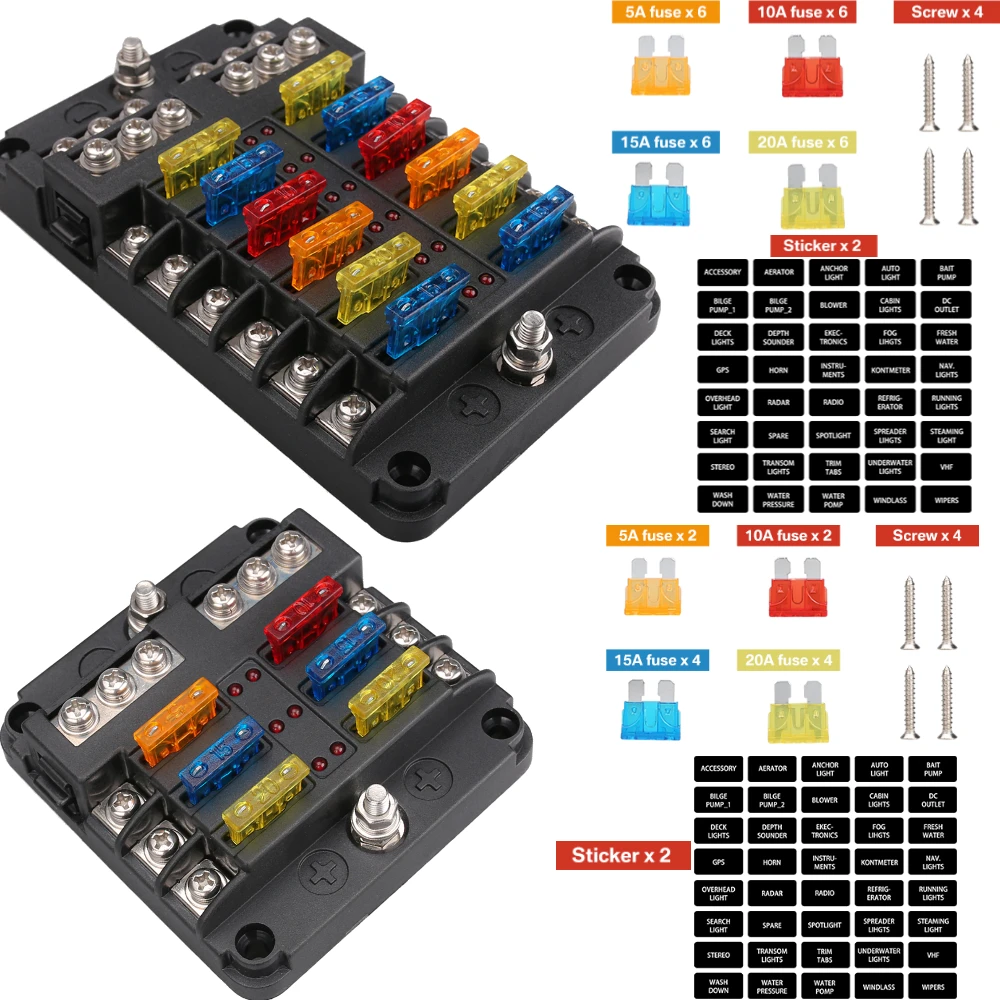 6/12 Ways Fuse Box Set LED Warning Indicator 12V 32V Power Distribution Panel Car Boat Fuse Box Holder With Plastic Cover   Read more