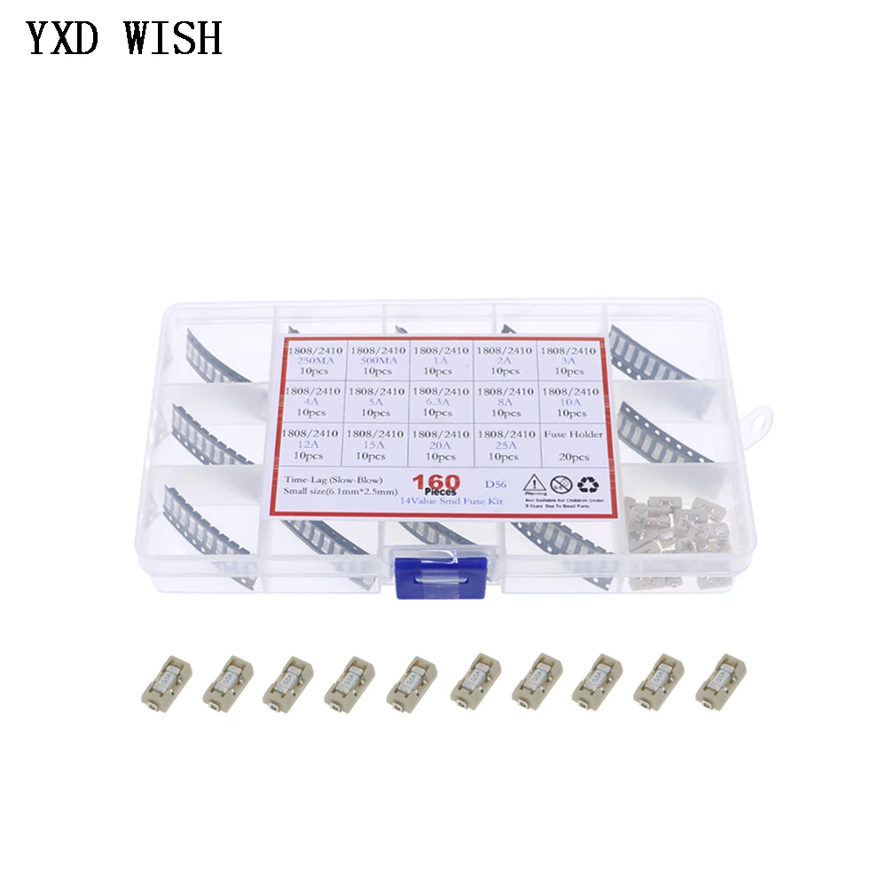 160pcs 15Values Ceramic SMD Slow Blow Fuse Kit 250mA 500mA 1A 2A 3A 4A 5A 6.3A 8A 10A 12A 15A 20A 25A 250V Fuses 1808/2410/6125  Read more