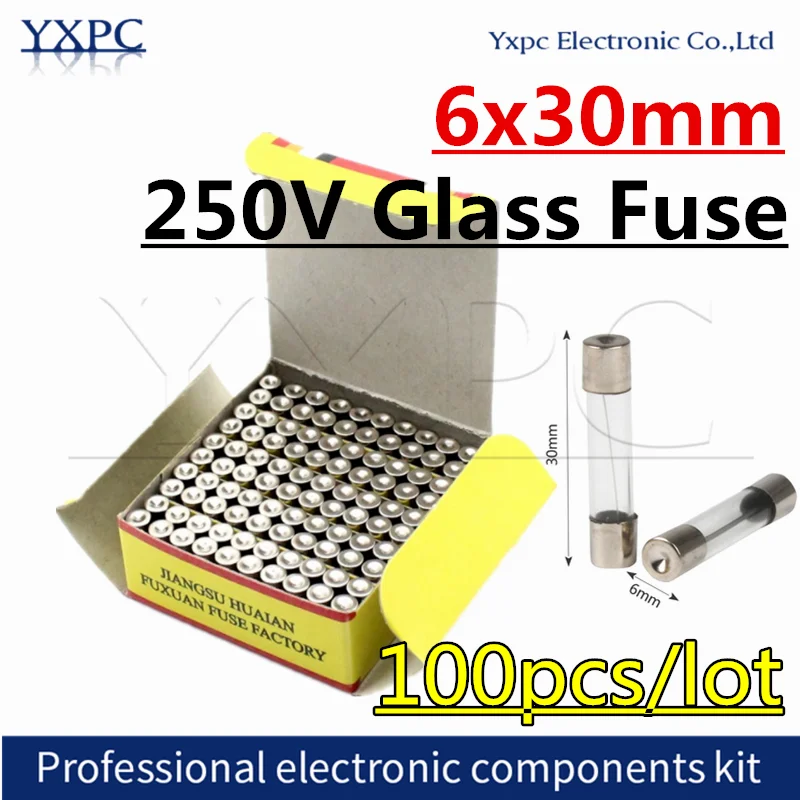 100pcs 6*30 250V Glass Fuse 6x30mm Household Fuses 0.1A 0.2A 0.5A 1A 2A 3A 4A 5A 8A 10A 15A 20A 25A 30A