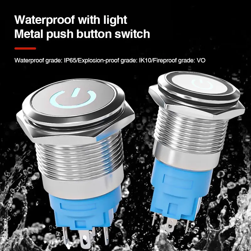 5 pcs Metal Push Button Switch 12v 16mm 19mm 22mm Ring Lamp Power Symbol Waterproof LED Light Self lock reset with connector 220