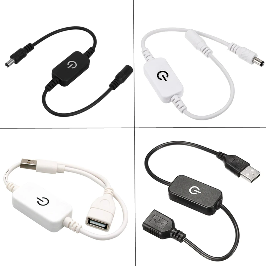 LED Touch Dimming Switch DC 5V-24V 0-100% Dimming DC USB Female To Male Extension Cord ON OFF Light Strip Controller White Black