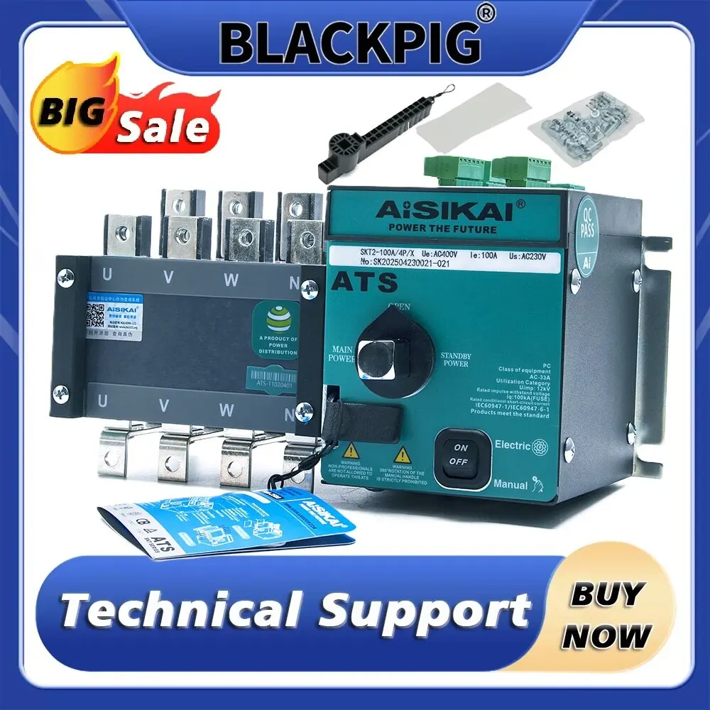 100% New Aisikai 4P 100A 160A 250A 630A ATS Dual Power Automatic Transfer Switch Control Module Circuit Breaker Generator Parts  Read more