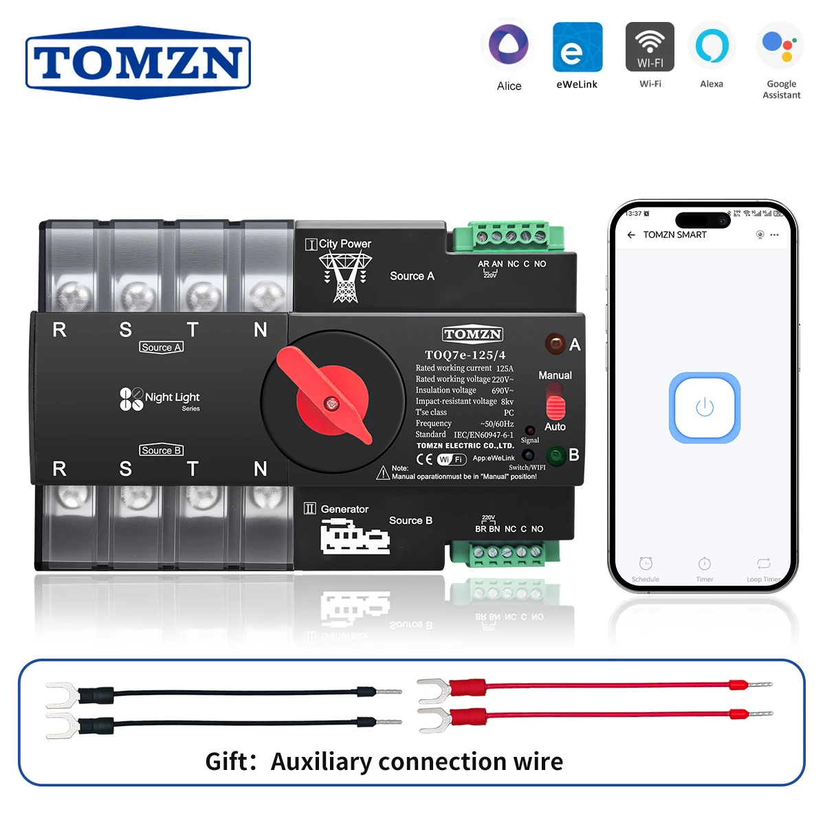 TOMZN Din Rail eWelink WIFI smart ATS timer 230V Dual Power Automatic Transfer Selector Switch Uninterrupted 4P 125A Generator