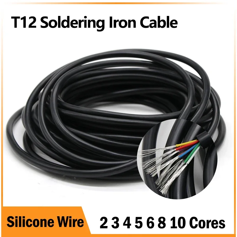 1/5/10m T12 Soldering Iron Station Silicone Cable 2/3/4/5/6/8/10 Cores Tinned Copper PTFE Insulation 200℃ High Temperature Wire