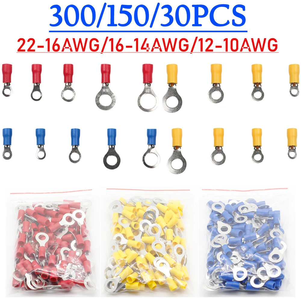 300/150/30PCS Ring Terminal Connector RV1.25 RV2 RV5.5 Ring Insulated Terminal Cable Wire Connector Electrical Crimp Terminal  Read more