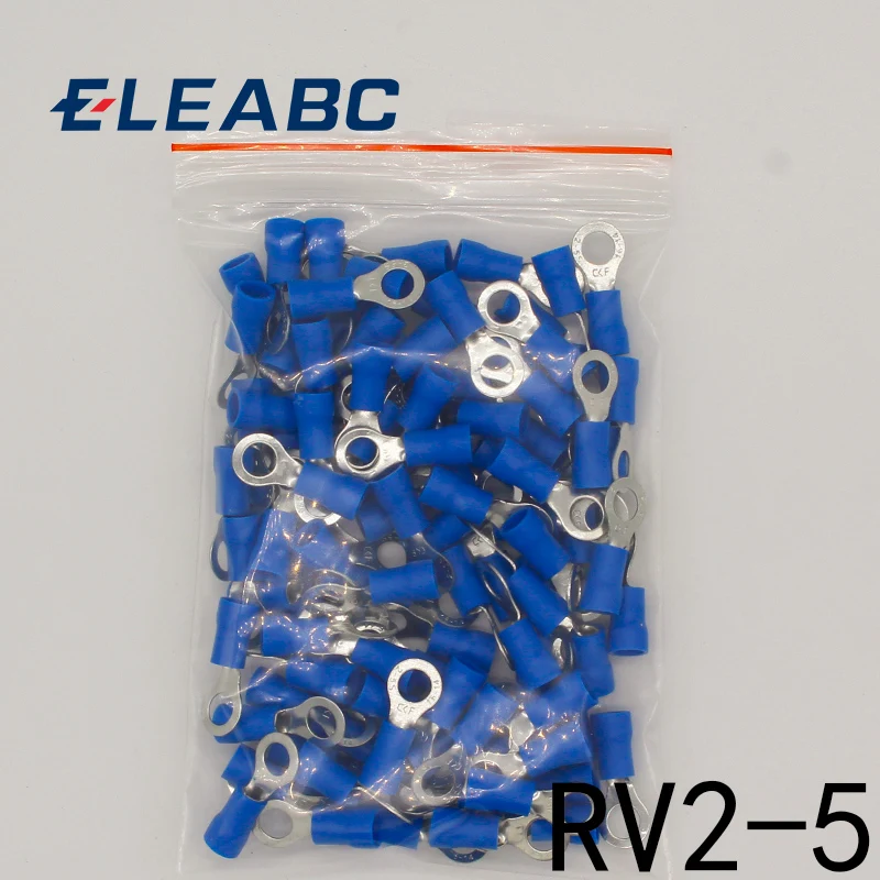 RV2-5 Blue Ring Insulated Wire Connector Electrical Crimp Terminal Cable Connector Wire Connector 100PCS/Pack RV2.5-5 RV