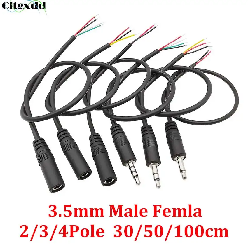 3.5mm Mono/Stereo Male Plug Female Jack Connector 2/3/4 Pole Pin AUX Extension Wire DIY Audio Headphone Repair Cable 30/50/100CM  Read more