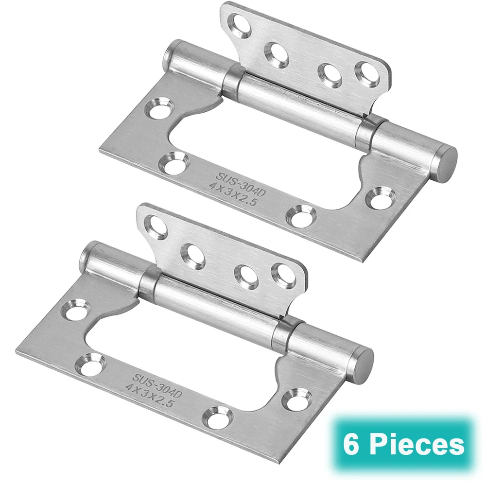 6 Pieces 4x 3 inch Non Mortise Door Hinges, Stainless Steel Door Hinges with Mounting Screws, Brushed Surface Door Hinge