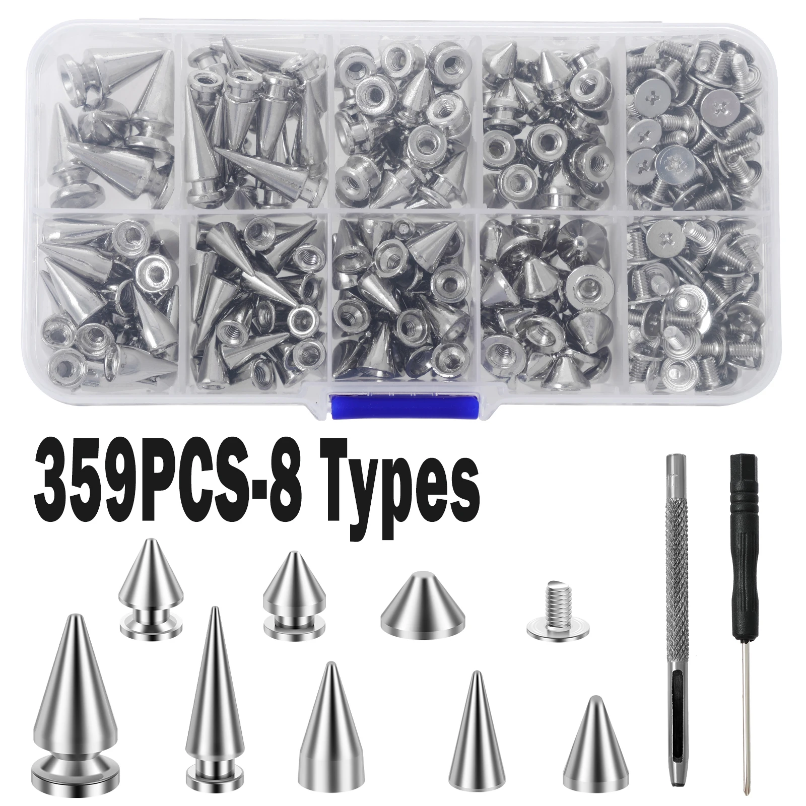 359PCS Round Cone Spikes Catalpa Alloy Screwback Punk Rivet Screw Back Studs and Spikes Kit DIY Clothes Leather Craft Accessorie