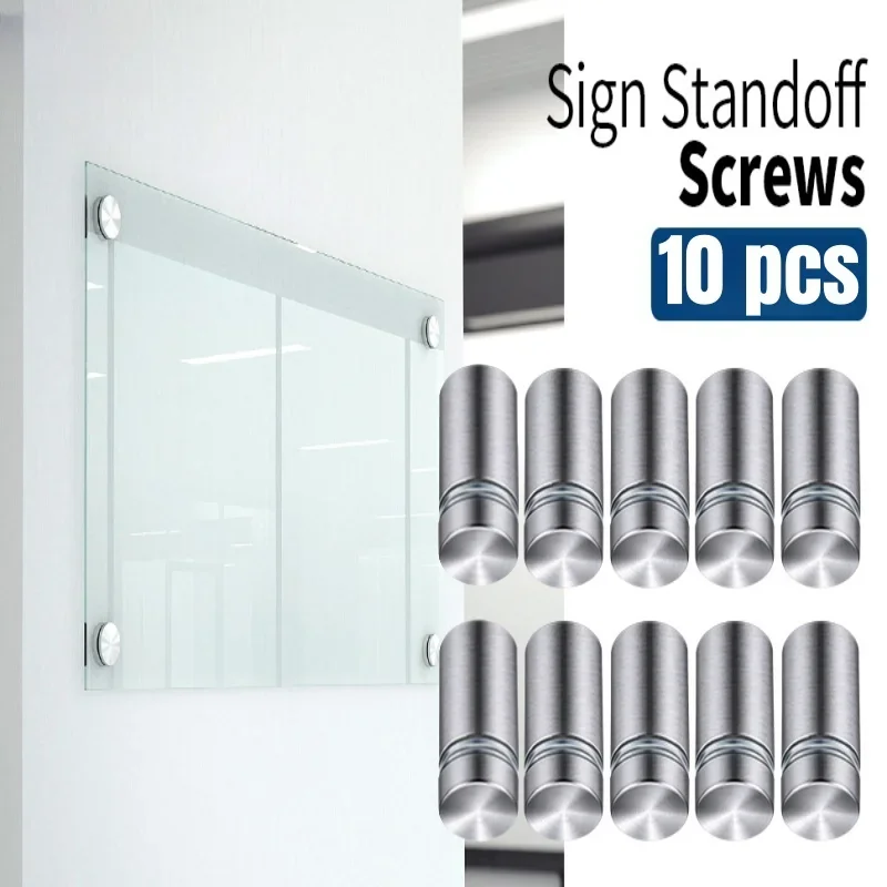 10pcs Sign Standoff Screws 12x25mm Advertising Screw Stainless Steel Wall Standoff Mounts Glass Acrylic Nail Mountting Hardware
