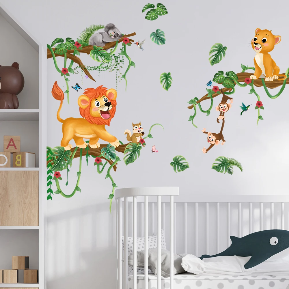 Lion Wall Stickers For Tree Games Children's Bedroom Wallpaper Baby Room Decoration Jungle Animal Murals  Read more